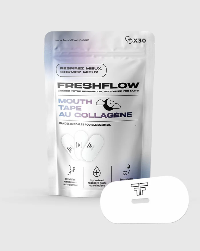 La bande buccale Fresh Flow a été conçue pour encourager naturellement la respiration nasale et vous aider à retrouver des nuits plus calmes et réparatrices.